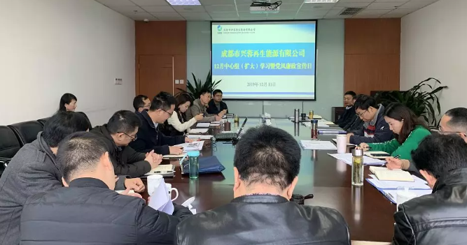 12月11日,公司党总支部书记饶怡在二楼大会议室主持召开了12月中心组(扩大)学习会暨党风廉政教育宣传日活动,公司党总支委员、经营班子成员、各部门单位及下属公司主要负责人参加会议。
