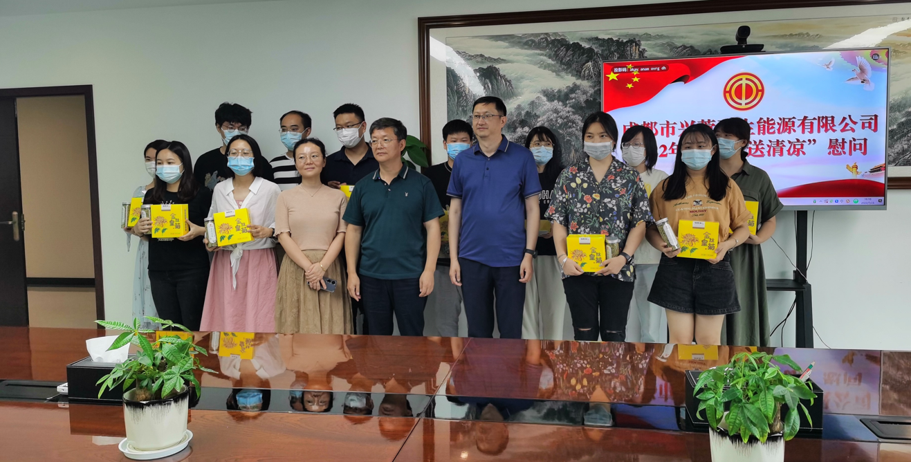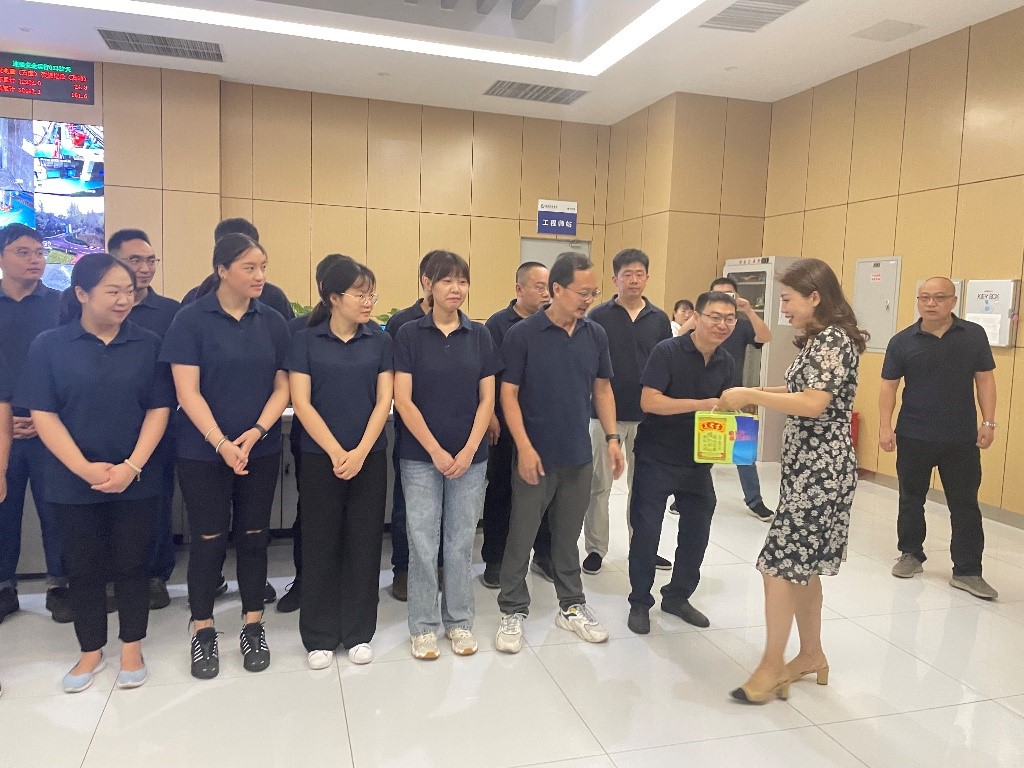 在公司本部,副总经理冉茂国、副总经理余春江、副总经理范峒彤为市场经营部、质量安全部、工程管理部职工代表,送上了清凉防暑慰问品