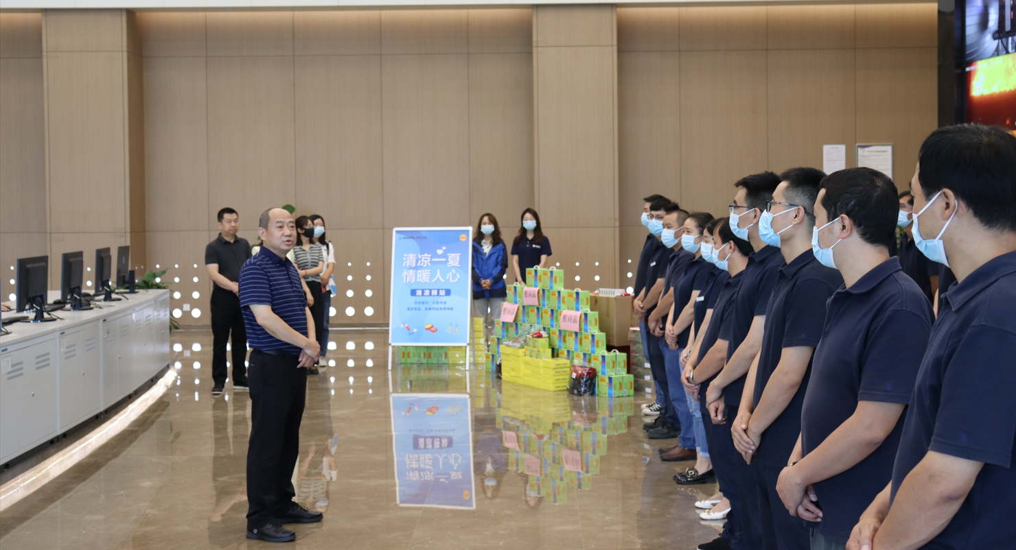 炎炎夏日,热浪来袭,烈日炙烤着大地,当人们在躲避酷暑时,有一群人迎着高温坚守岗位。为有效改善职工夏季生产生活条件,认真做好高温天气防暑降温工作,保障一线职工身体健康。连日来,公司领导班子分组来到一线工作岗位,开展高温慰问送清凉活动,为奋战在高温一线的劳动者们送上一份清凉、一份关怀。在金年会-金字招牌,公司党委书记、董事长饶怡,副总经理廖强,工会主席赵颛看望慰问了高温酷暑中奋战在一线的职工,贴心地为他们送上防暑降温用品,向一线职工道声辛苦、送份清凉。饶怡详细询问了员工们的工作与生活情况,感谢他们为公司发展和民生保障付出的辛勤努力,反复叮嘱大家要提高夏日防暑意识,在保证安全生产的同时做好自我防护,确保以更好的状态投入到工作中。同时,要求金年会-金字招牌守牢安全底线,做好高温时节各项工作,普及好防暑降温和急救知识,确保广大一线职工的健康和安全。